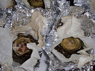 Tear off two sheets of foil per artichoke, or one sheet of parchment, and one of foil, each one about a foot. Use heavy-duty foil.
